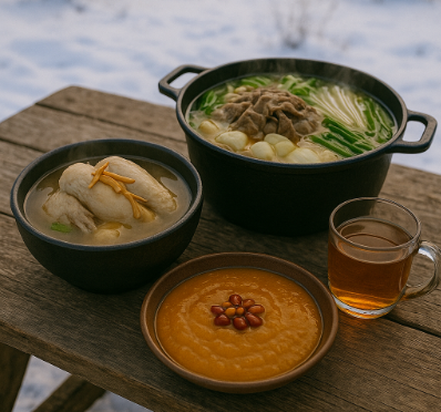 겨울 캠핑의 첫 번째 포인트는 ‘체온 유지’입니다. 춥다고 그냥 컵라면으로 때우기엔 아쉬운 계절, 이럴 때일수록 몸을 덥혀주는 보양식 캠핑 메뉴가 필요합니다. 대표 메뉴로는 삼계탕, 닭백숙, 감자탕, 소고기무국이 있습니다.
